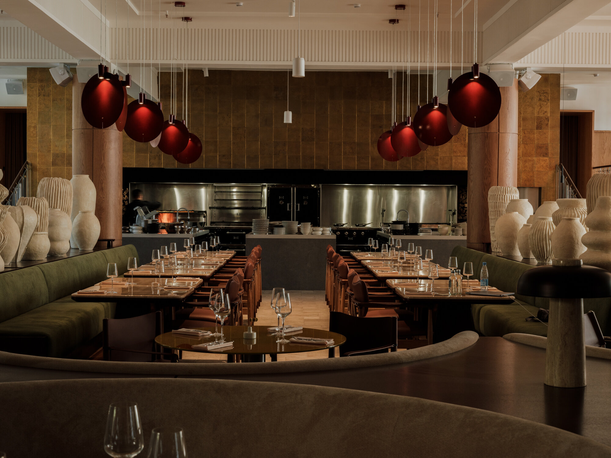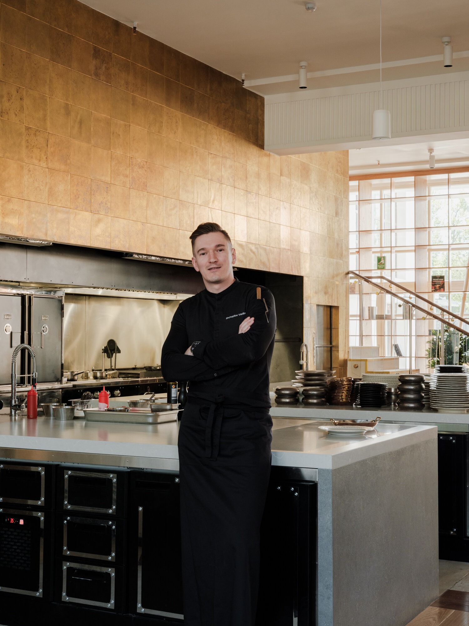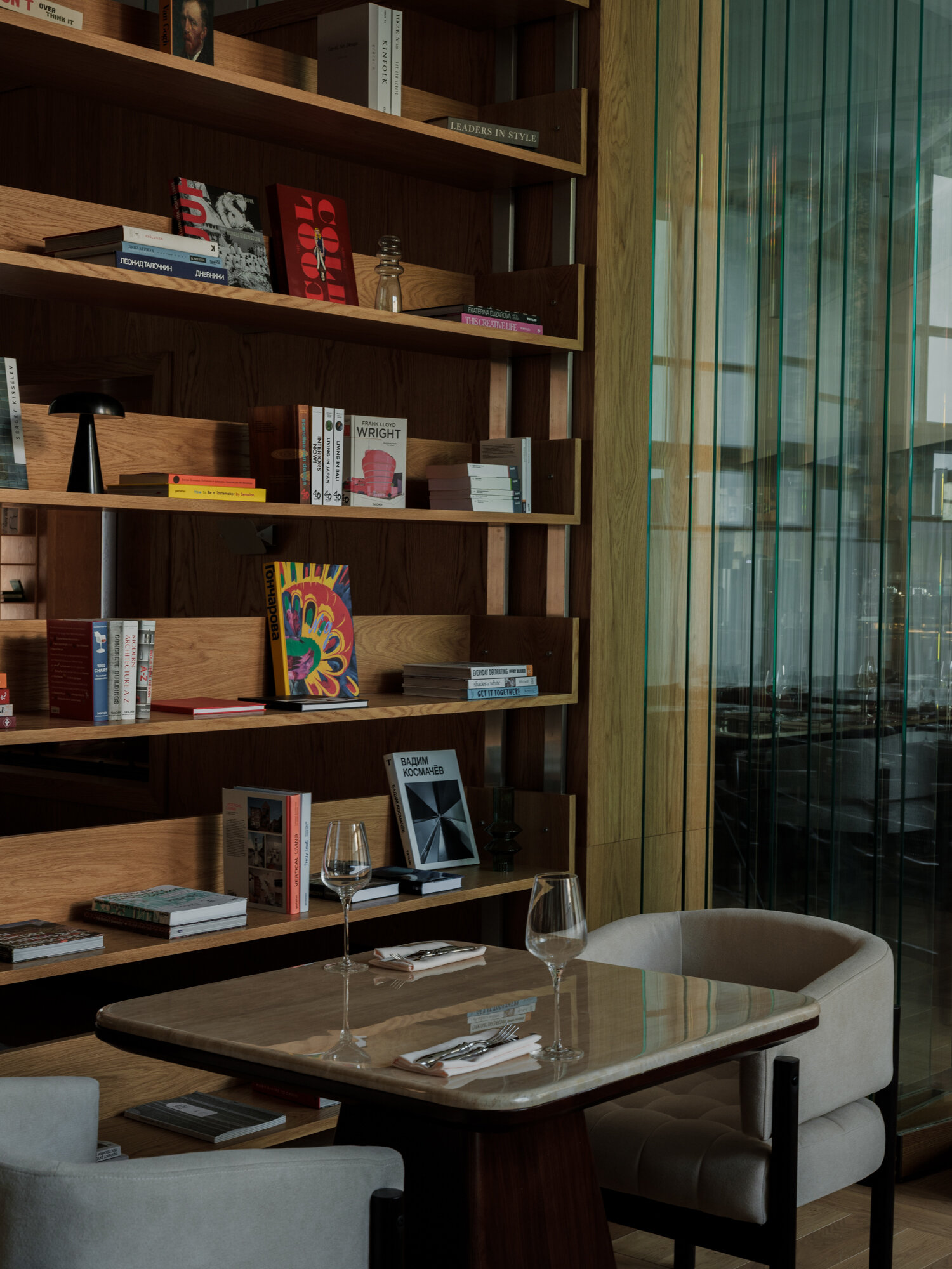 Гастрономическим сердцем проекта стал ресторан «Москва» под руководством шеф-повара Владимира Щепилова. Его меню представляет карту вкусов России: здесь встречаются сахалинские ежи с морской водой, дальневосточный гребешок с маринованным фенхелем и ряженкой из орехов кешью, мурманская куропатка с пюре из тыквы и клюквой, оленина с тремя текстурами пастернака, ягнёнок с трубочками из нута и домашним творогом, каре козлёнка с дроблёным пшеном и кремом из моркови. В карте закусок — черноморские антипасти, сало из серой макрели с рублеными томатами, таёжные ягоды с башкирскими сырами, паштеты из дичи и фермерские маринады. Особое внимание уделено десертам: вафельная трубочка с ванильным кремом, медовик с мороженым из топлёного молока, клюквенный морс в новой подаче, мусс из ряженки с карамелизированными орехами и шоколадный торт с настойкой на кедровых иголках. Винная карта от сомелье Александра Зубкова также делает акцент на российские вина, позволяя попробовать более 40 образцов по бокалам. В баре представлены редкие портвейны и коньяки, дижестивы и настойки из российских трав и ягод, а также авторские чаи с ароматами леса и гор.