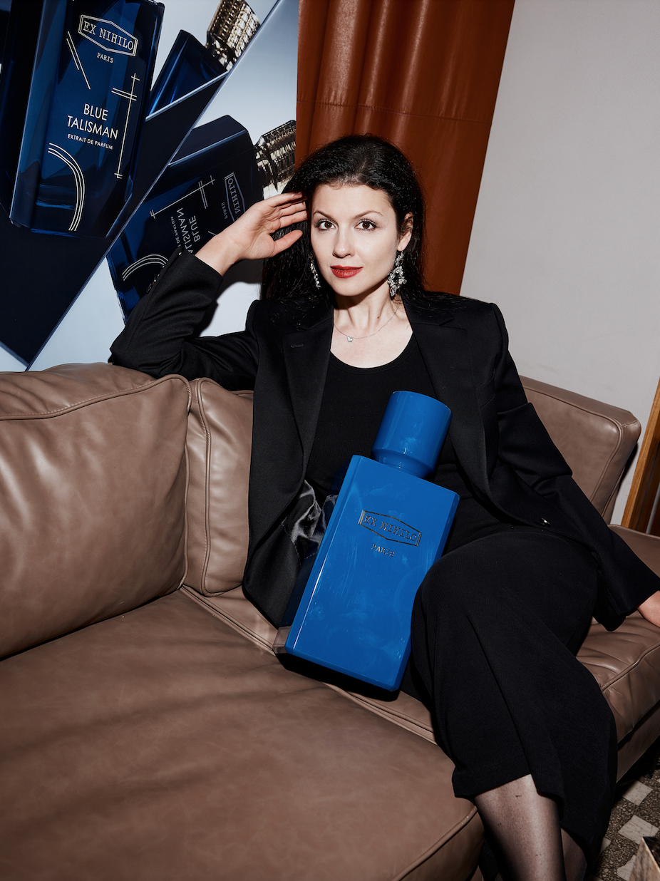В Москве прошла презентация аромата BLUE TALISMAN EXTRAIT от EX NIHILO. Созданный как гипнотическое украшение, BLUE TALISMAN воплощает в себе лучшие ноу-хау EX NIHILO в качестве парфюмерного шедевра. Как настоящее произведение искусства, он ассоциируется с эксклюзивностью Вандомской площади, где всё началось 10 лет назад с первого бутика. С момента своего появления BLUE TALISMAN стал культовым творением EX NIHILO и теперь считается талисманом Дома. BLUE TALISMAN — одно из таких многогранных творений, настоящий обонятельный калейдоскоп из множества ароматных нот и обонятельных семейств. Как Eau de parfum (цитрусовый, амбровый, древесный) так и Extrait de parfum (фруктовый, цветочный, амбровый) — созданы Жорди Фернандес насыщенными композициями из натуральных ингредиентов. Верхние ноты: Груша, уже присутствующая в EDP, здесь звучит в чрезмерной дозировке. Сочная и солнечная, она усиливает свежесть верхних нот и придаёт более сияющую фруктовую грань Extrait de parfum. Ноты сердца: уникальный дуэт белых цветов: флердоранж раскрывается нежными цветочными, медовыми и слегка цитрусовыми оттенками. Чтобы усилить интенсивность и текстуру, Жорди акцентирует эти белые цветы, добавив жасмин самбак. Он придаёт аромату сладкие, пьянящие ноты и оттенки, более фруктовые и менее анималистичные, чем жасмин крупноцветковый. Теплое и солнечное сердце, которое следует за яркими фруктовыми верхними нотами. Базовые ноты: Гурманский и амбровый шлейф. Интенсивность и стойкость аромата, как правило, определяются его базовыми нотами. В версии Extrait амбровый оттенок становится более насыщенным и сладким благодаря тёплой ванили и корню сандалового дерева, раскрывая миндальные и тонкие сливочные нюансы.