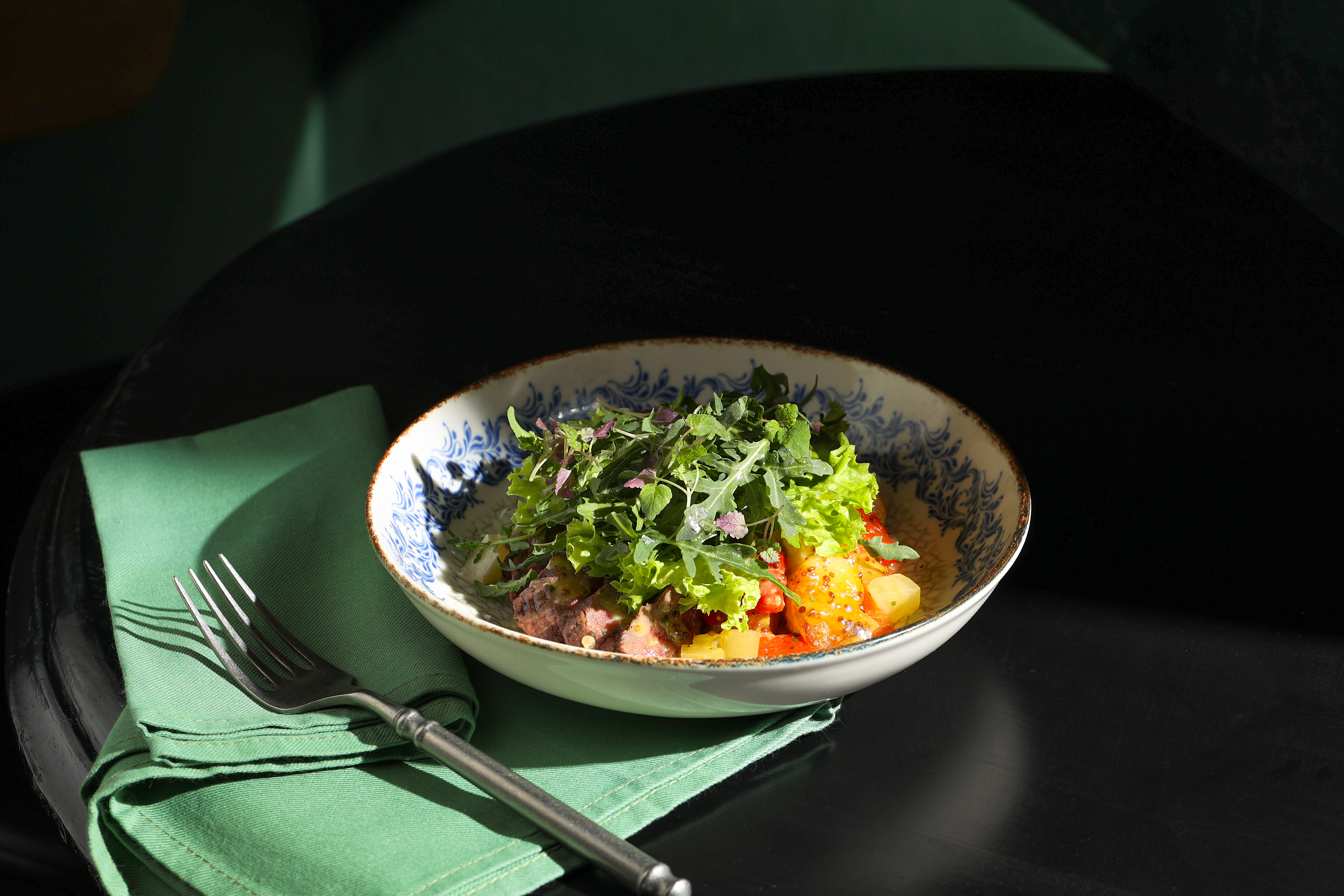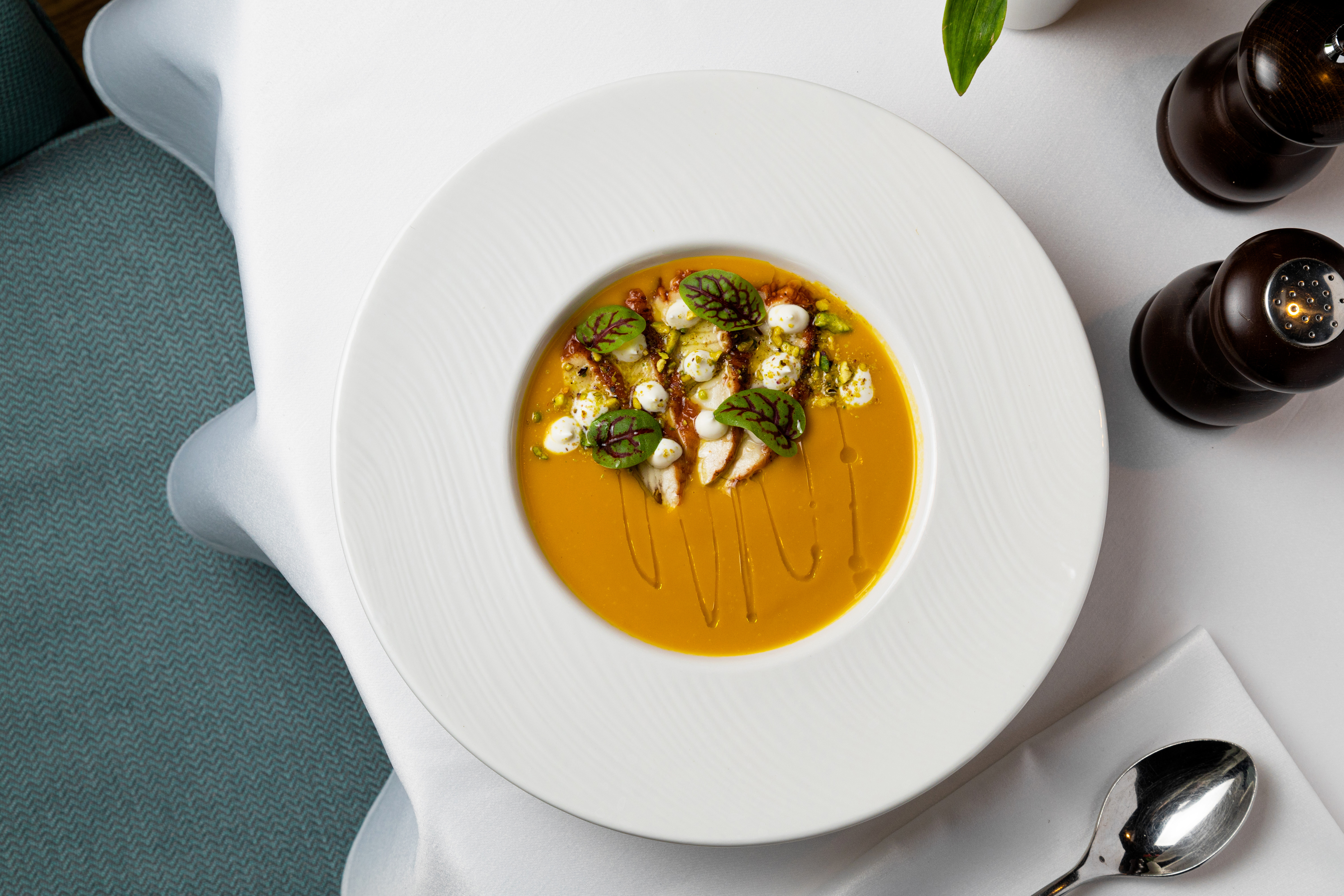 В ресторане Blanc, где зелёный оазис живёт круглый год, осенний сезон встречают яркими красками и солнечными вкусами. Бренд-шеф Андрей Лапин обновил меню, добавив блюда, которые продолжают летнее настроение. За итальянское настроение отвечают вителло тоннато с соусом из тунца и каперсов и домашние равиоли с начинкой из лосося и угря. Среди сытных новинок — стейк-салат с печёным картофелем, мятным маслом и медово-горчичной заправкой, а также сочный цыплёнок с картофельным пюре, зеленью и сезонными лисичками. Десерт с персиком, йогуртом и маракуйей, скрывающийся под безе с фирменной буквой “b”, создан, чтобы радовать даже в дождливый день. Шеф-бармен Никита Ильин дополнил сезон горячими напитками: коктейлем Leshy с морошкой, черникой, брусникой и вареньем из шишек на белом вине и ликёре Branca Menta, а также безалкогольным Gingerbread man — с пряным мёдом, имбирным пюре, грушами и апельсиновым джемом.