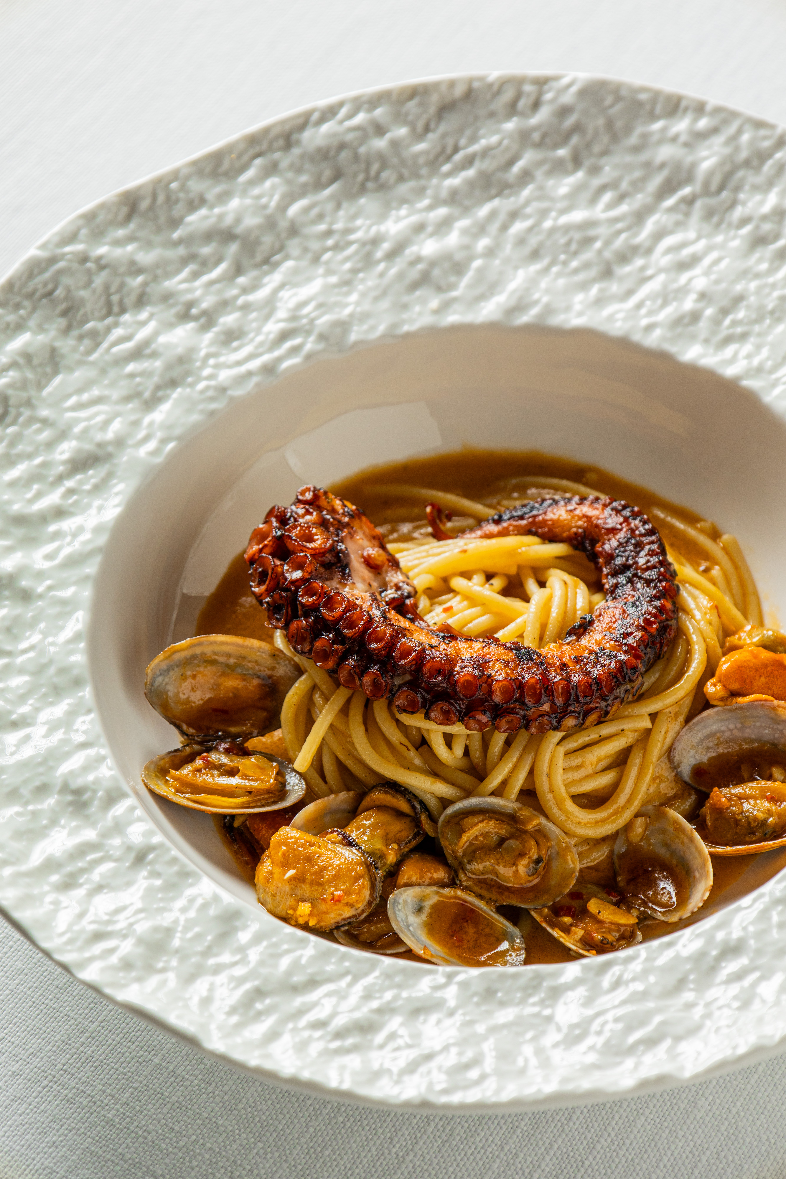 Ресторан Historia представил масштабное обновление меню. Основное внимание уделено блюдам из морепродуктов, которые сочетаются с овощами, цитрусами, ягодами и пряными соусами. В разделе закусок появились салат с крабом, авокадо и клубникой (1650 ₽), севиче из гребешка с цветной капустой и маринованным имбирём (1650 ₽) и стейк-салат с пастернаком и дайконом (1950 ₽). Среди горячих блюд — филе сибаса на гриле с корочкой том ям и кремом из цветной капусты (2150 ₽), филе дорадо с фисташковым соусом и шпинатом (1850 ₽) и осьминог на гриле с томатами и соусом ромеско (1690 ₽). Раздел паст и круп пополнили спагетти с осьминогом, вонголе и мидиями (1850 ₽), лингвини со страчателлой и щучьей икрой (1490 ₽) и свекольное ризотто с кальмарами и козьим сыром (1150 ₽).