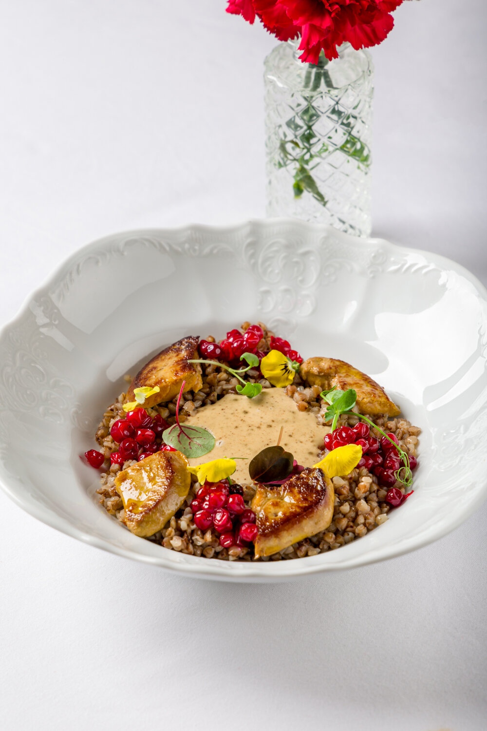 Гранд-кафе «Dr. Живаго» представляет дебютное меню нового шеф-повара Артема Мухина. Талантливый кулинар, победитель конкурсов и любимец гастрономической публики, он сочетает уважение к традициям с сезонными продуктами и авторскими техниками. В обновленном меню закуски открывает комбинация морских гребешков с морковным медом и спелым инжиром (2280 руб.). Столичный салат (2250 руб.) теперь подается с курицей, консервированным крабом, стручками зеленого горошка и красной икрой. Заливное из осетрины (1650 руб.) готовят на рыбном бульоне с шафраном, с прослойкой из хрена и маринованного в лимоне огурца и порцией черной икры. На горячее шеф предлагает жаркое из перепелки с тыквой (1890 руб.) и мини болгарские перцы, фаршированные тушеным 8 часов утиным мясом с соусом из сыра из топленых сливок (1650 руб.). Картофельная запеканка (1400 руб.) объединяет печеный картофель с маслом и паприкой, щечки в мясном соусе, белые грибы и пудру из подосиновиков и лука. Гречка с фуа-гра и моченой брусникой (1400 руб.) — новый московский шик. Вареники с кроликом (820 руб.) подаются с молодыми грецкими орехами и горчичным соусом.