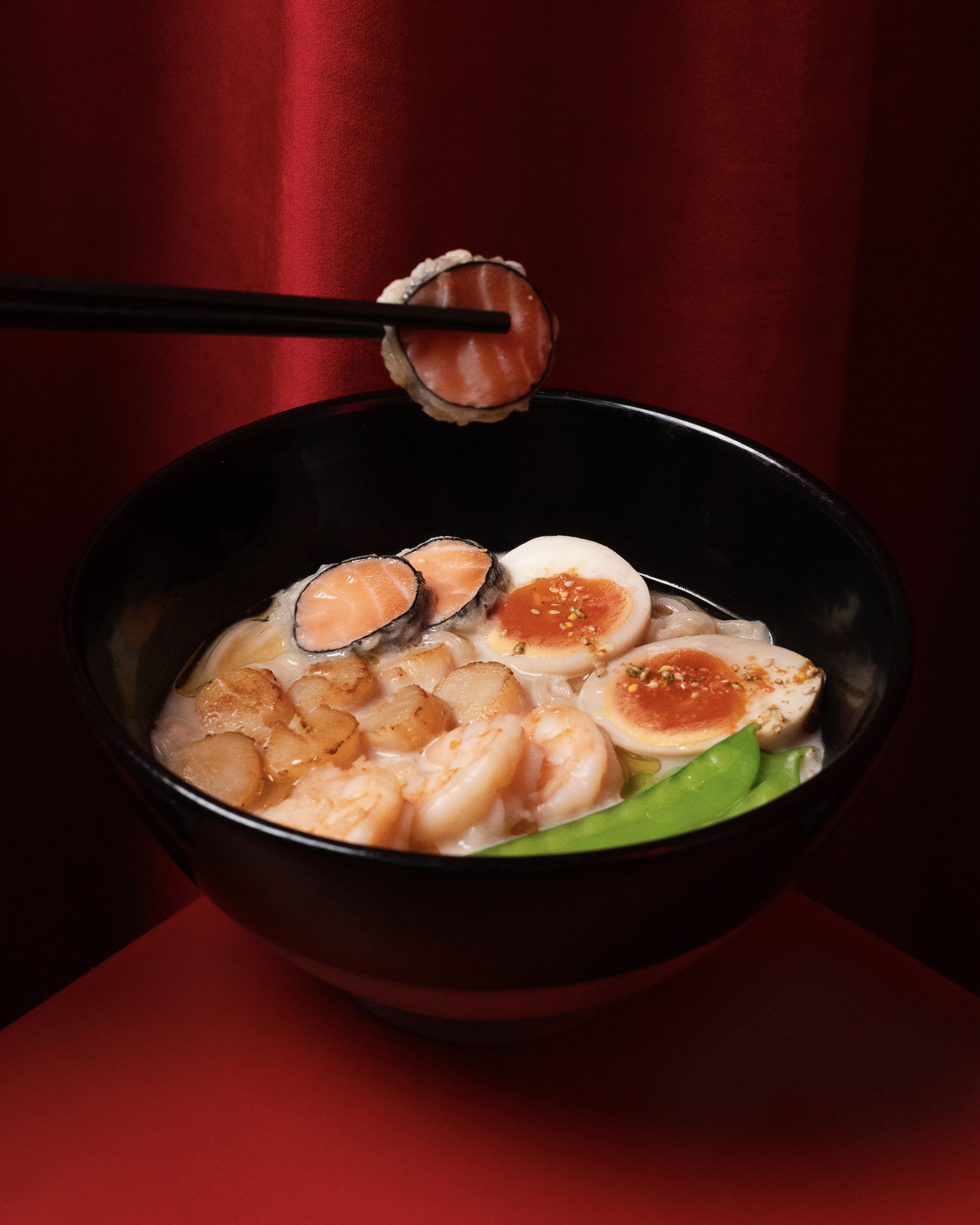 С наступлением холодов команда японского рамен-бара RA’MEN представила сезонное обновление меню. В нём — насыщенные рамены, горячие напитки, подаваемые в кружках в виде героев Миядзаки, яркие коктейли и самый милый десерт этой осени. Основу новинок составляют три рамена на плотном бульоне, который варят до 24 часов. «Неукротимый цунами» (1350 ₽) — с морепродуктами, сливками, морским гребешком, креветками и шайбочками из лосося в темпуре. «Загадочный Джим» (950 ₽) с утиной грудкой и соусом хойсин вдохновлён китайской кухней, а «Чикен карри» (890 ₽) сочетает курицу барбекю и шелковый тофу. К разделу закусок добавились японские снеки (390 ₽), спайси ананасы кимчи (450 ₽) и татаки из говядины (750 ₽) в соусе якинику. В разделе боулов — домашняя лапша с говядиной и маринованным желтком (990 ₽). Среди суши и роллов выделяются говядина татаки с трюфельным айоли (290 ₽), гунканы с гребешком (190 ₽)и роллы лосось-голубика с унаги-соусом или говядина-угорь (790 ₽). Главный десерт сезона — «Бо» (690 ₽), вдохновлённый персонажем из «Унесённых призраками». Это мусс из тархуна и лайма с грушевым конфи и миндальным бисквитом, выполненный в форме забавного мышонка. Барное меню пополнилось пятью коктейлями, посвящёнными культовым аниме. Среди них Tābo Babā (850 ₽) с виноградным соджу, имбирём и ванилью, коктейль с ледяным шаром и золотом в честь героя из «Дандадан», тропический Gejimayu (850 ₽) на чайном роме и вермуте фейхоа, который подают с утяжелителями и полароид-снимком, а также вернувшийся по просьбам гостей Philosopher’s Stone (850 ₽) из летнего ивента — грейпфрутовый твист по мотивам «Стального алхимика».