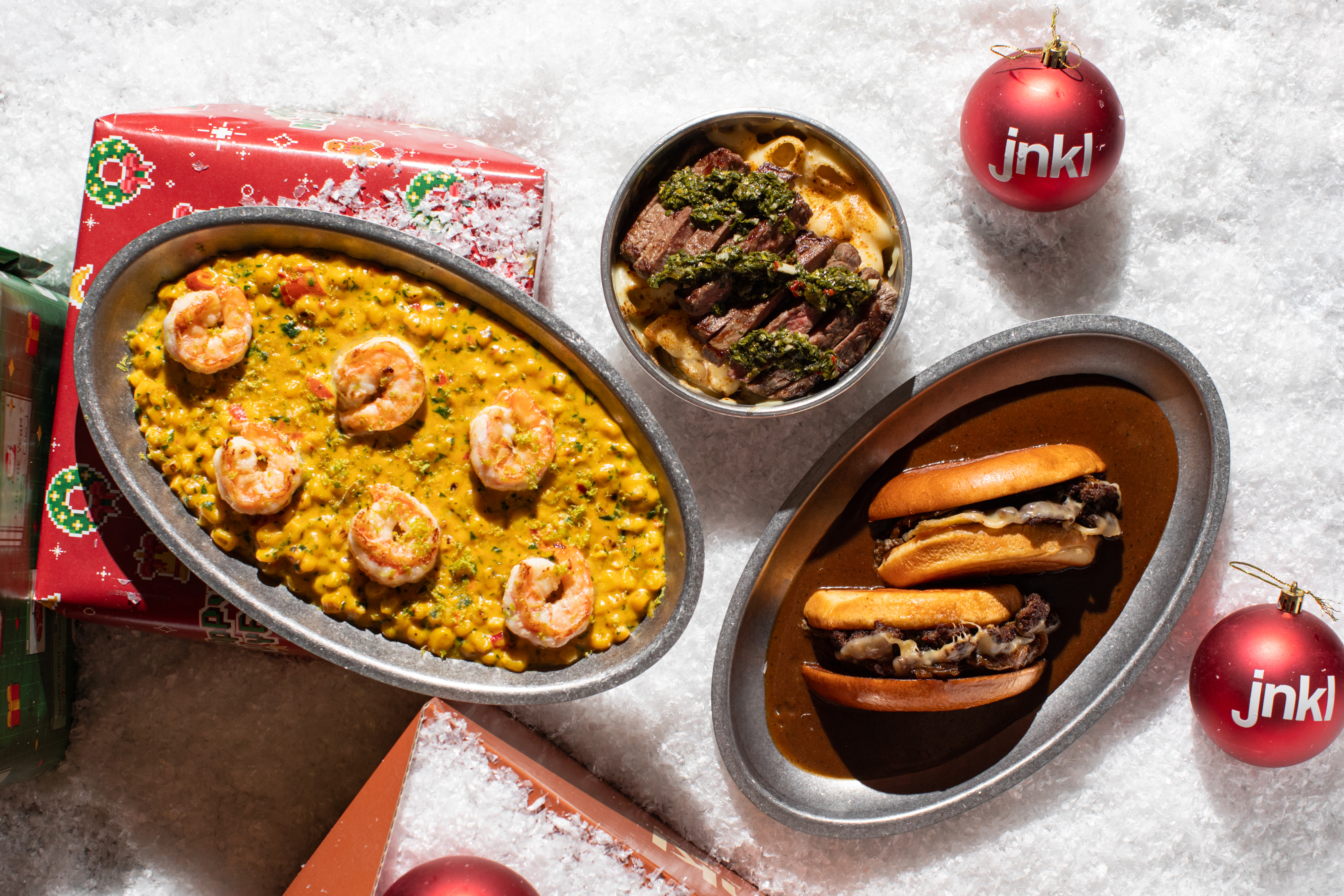 Сезонное special-меню в JNKL от шеф-повара Александра Гарагуля и шеф-бартендера Алексея Горскова создано для зимнего читмила и праздников. В меню — french dip burger с сыром маасдам и карамелизированным луком (1 500 ₽), corny shrimp с кукурузой, креветками, сливочным соусом и чили (850 ₽) и mac & cheese со стейком из говядины (550 ₽). К напиткам — Marshmallow Bomb с маршмеллоу (600 ₽), Apple Toddy с ванильной пеной (600 ₽) и Hot Aperol с апельсином и виноградным соком (600 ₽). С 19 декабря до 19 января можно заказать детское комбо от проекта from detstvo (1 900 ₽) с сырными и овощными палочками, бургером и JNKL колой — для взрослых и детей, чтобы сделать семейные обеды ещё уютнее. В канун Нового года с 25 по 30 декабря в JNKL проходят кинопоказы новогодней классики: «Эльф», «Плохой Санта», «Друзья», «Том и Джерри», «Крепкий орешек» и «Чарли и шоколадная фабрика». Расписание публикуется в соцсетях проекта.