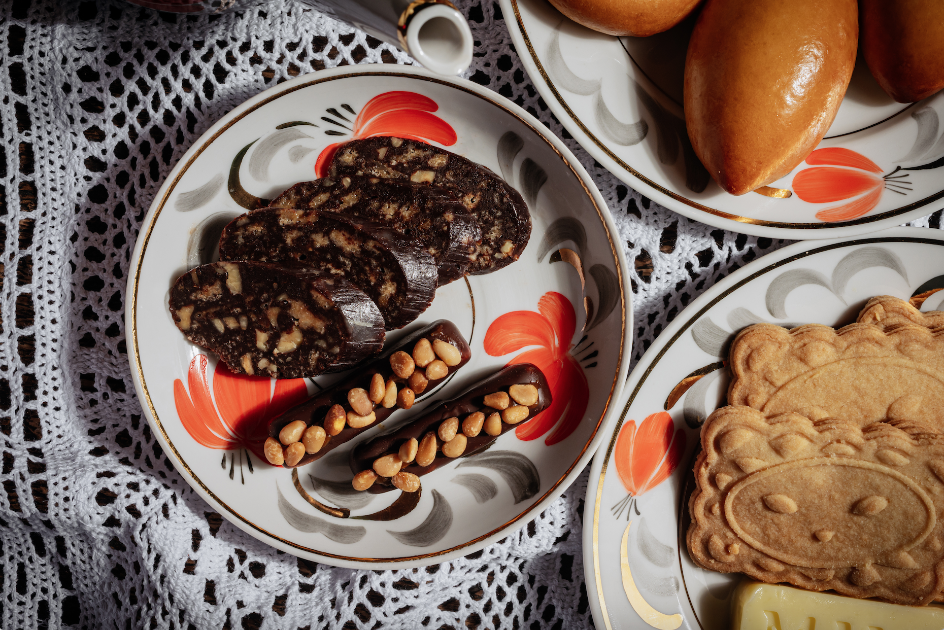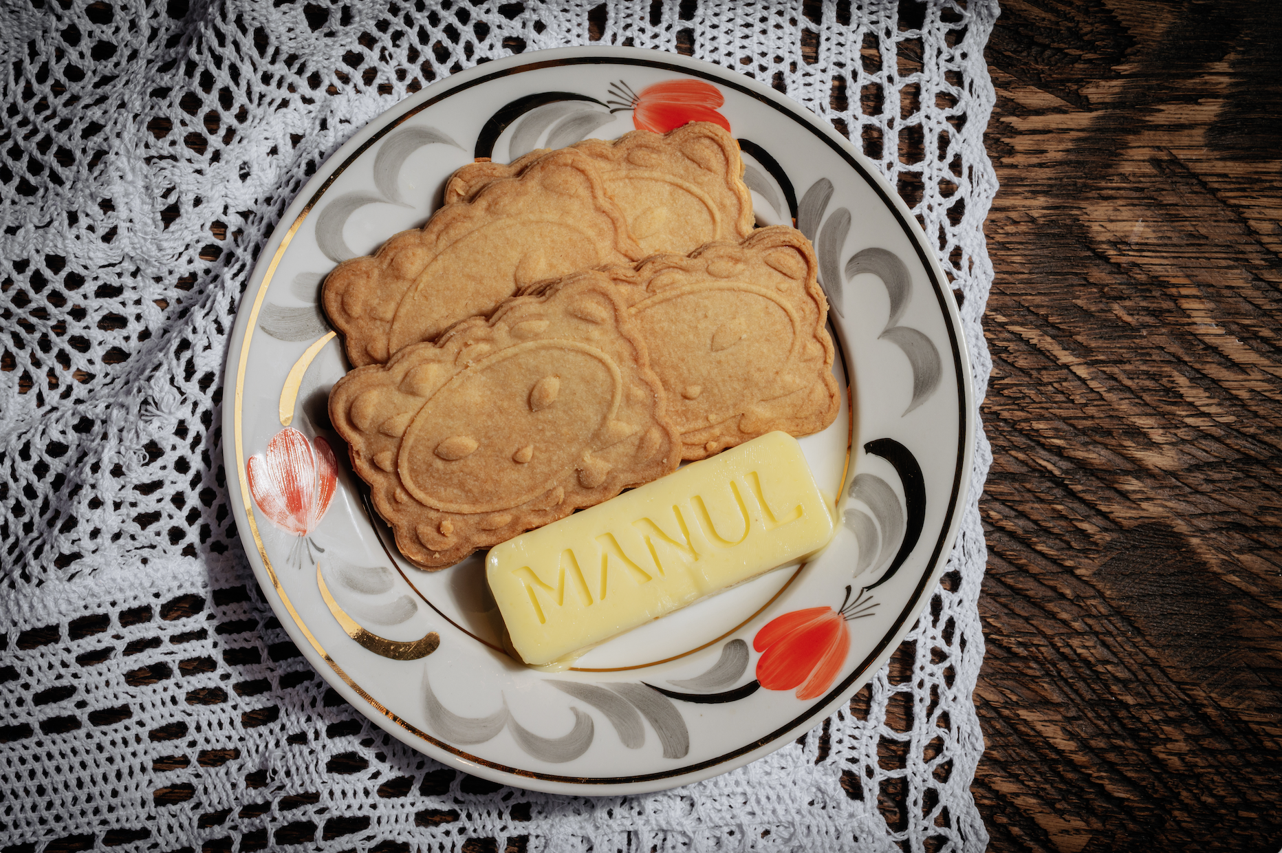 Под треск огня в очаге и ароматы смородины с мятой Manul вместе с шеф-кондитером Полиной Андреевой представляют особый десертный сет, погружающий в атмосферу детства. Чай подают в винтажном сервизе «Ноготки» 60-х годов Дмитровского фарфорового завода, вместо скатерти — кружевная салфетка, а вместо привычных тортов — любимые сладости: гренки с сахаром из французской бриоши, сахарное печенье «глаз манула», шоколадная колбаса, пирожки с вишней и малиной, ватрушки с творогом, орешки с вареной сгущенкой и грецким орехом, сибирский грильяж и карамельные ложки. Всё сопровождает душистый чай со смородиновым листом и свежей мятой. Стоимость сета на двоих — 6 000 руб.