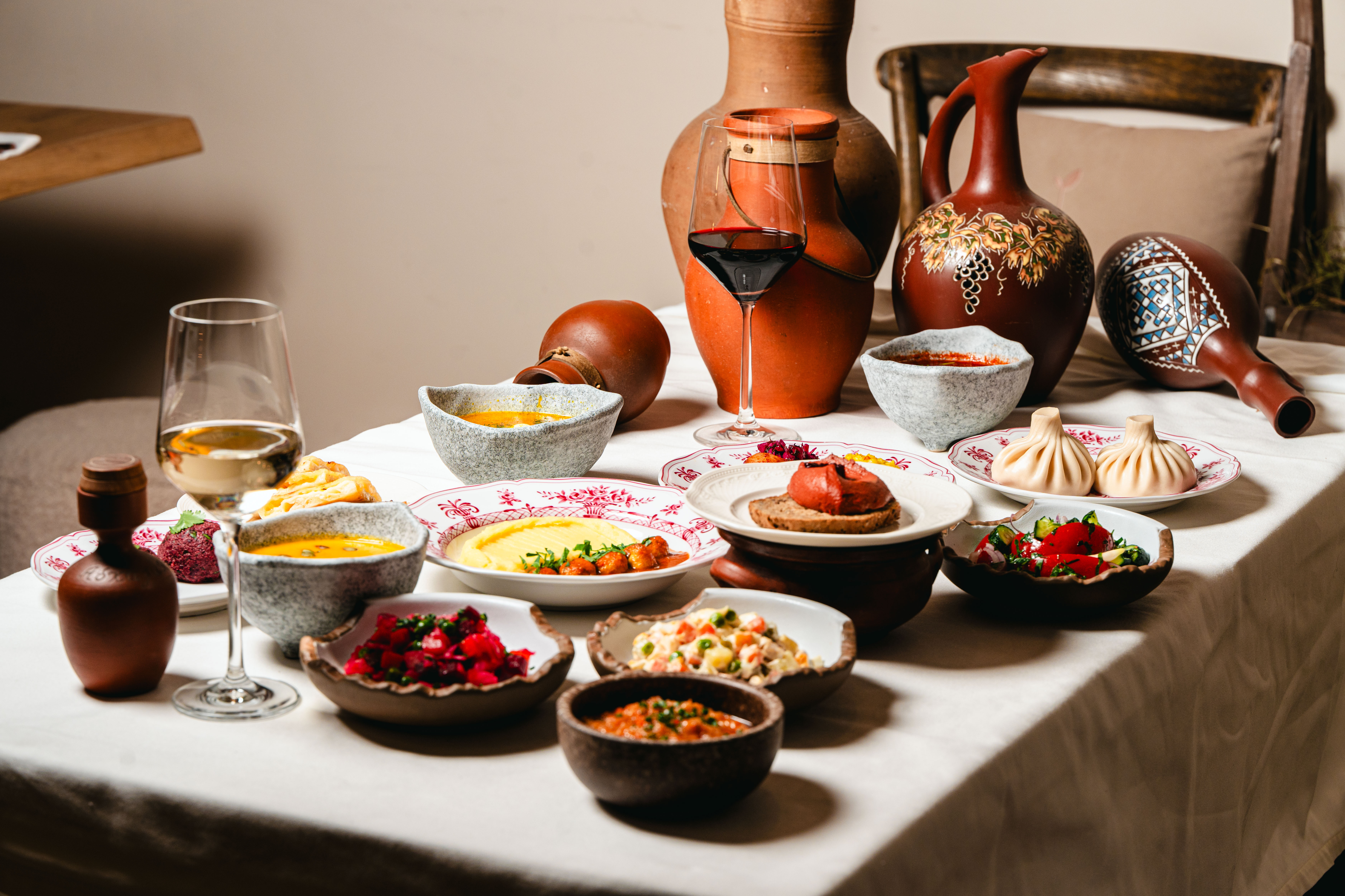 В ресторане Shota расширили формат будничных обедов: с понедельника по пятницу с 12:00 до 16:00 здесь подают обновлённое дневное меню с акцентом на кавказскую классику. В меню — холодные закуски и салаты, супы и горячие блюда: винегрет с кахетинским маслом, паштет из цыплёнка, свекольное пхали, оливье с фермерской птицей, хинкали, мини-хачапури по-имеретински, шашлык из цыплёнка и лобио. На первое — борщ с говядиной, тыквенный крем-суп и куриный суп с домашней лапшой. Обед из двух блюд обойдётся в 730 рублей, из трёх — в 930. Для тех, кто предпочитает более расслабленный формат, доступен сет с бокалом просекко или вина за 1300 рублей.