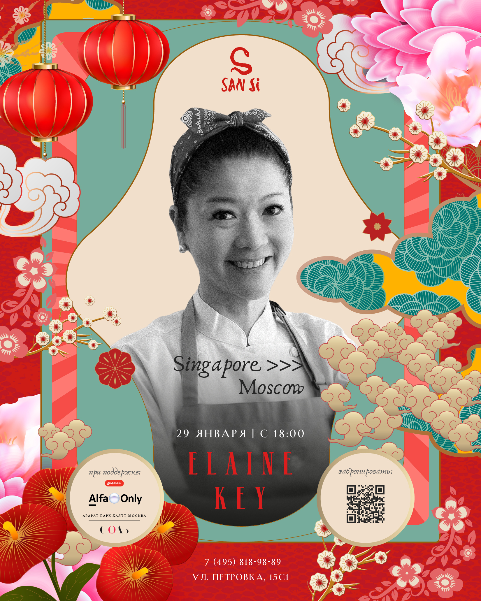 29 января в 18:00 ресторан San Si продолжает серию ужинов с приглашенными шефами из Азии. В этот раз вместе с бренд-шефом Василием Зайцевым за кухни встанет фуд-инфлюенсер из Сингапура Элэйн Кей, известная как Мадам Кей, которая популяризирует современное прочтение традиционной азиатской кухни через поп-апы в Сингапуре, Париже и других городах мира. В меню à la carte представлены авторские блюда малайзийской и китайской кухни. На закуску предложат краб-чили с желе тосадзу (2380 руб.), говяжий язык Лао Ган Ма (1600 руб.) и спринг-ролл с курицей (1600 руб.). В суп из креветок и курицы добавят японскую лапшу инанива (2100 руб.). Традиционный юго-восточный сатэй приготовят из мраморной говядины (2480 руб.), а тофу бифантэн подадут в хрустящей панировке с перцем чили (1180 руб.). Яичную лапшу предложат с морским гребешком (2500 руб.), а рис в хайнаньском стиле — с цыпленком (2280 руб.). Морской окунь на пару дополняют соевым соусом с имбирем (2280 руб.). Завершат ужин десерты: крем-брюле из пандана с ванильным мороженым и сиропом из гула мелака (980 руб.) и персиковый пудинг с манго (780 руб.).