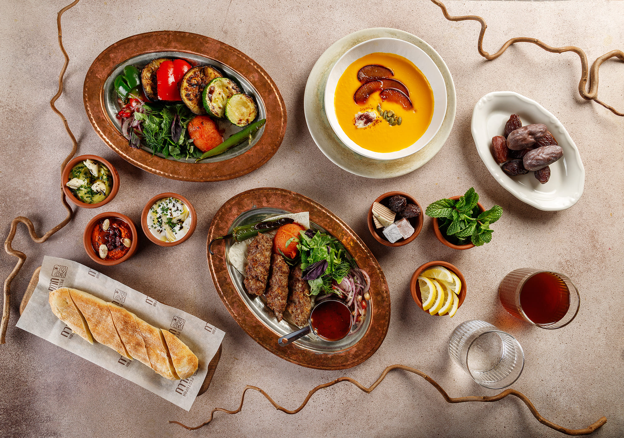 В ULLU к священному месяцу Рамадан подают специальные ифтар-сеты, созданные бренд-шефом Марком Шах Акбари с уважением к традициям. Каждую трапезу открывают финики, лимон и мята, сопровождает ужин домашний узвар из кураги. Для двоих доступны три сета: №1 (4 900 ₽) с хумусом, мутабалем, дзадзики, чечевичным супом и дуэтом из шашлыка из цыплёнка и запечённой голяшки; №2 (5 300 ₽) для любителей пряного — тархуновый хумус, мухаммара, тыквенный суп и люля-кебаб из баранины или курицы; №3 (5 500 ₽) более лёгкий и свежий — розовые томаты с мутабалем, томатный суп и дорадо или сибас с картофелем под тархуновым айоли. Для компании до 4-х человек предусмотрен сет на 19 000 ₽ с обилием мезе, пиде с трюфелем, лепёшками, куриным бульоном с дюшбарой и горячими блюдами из ягнёнка, люля и цыплёнка. Каждый сет завершают восточные сладости — финики, баклава с мороженым или холодная пахлава. Предложение действует с 19 февраля по 19 марта.