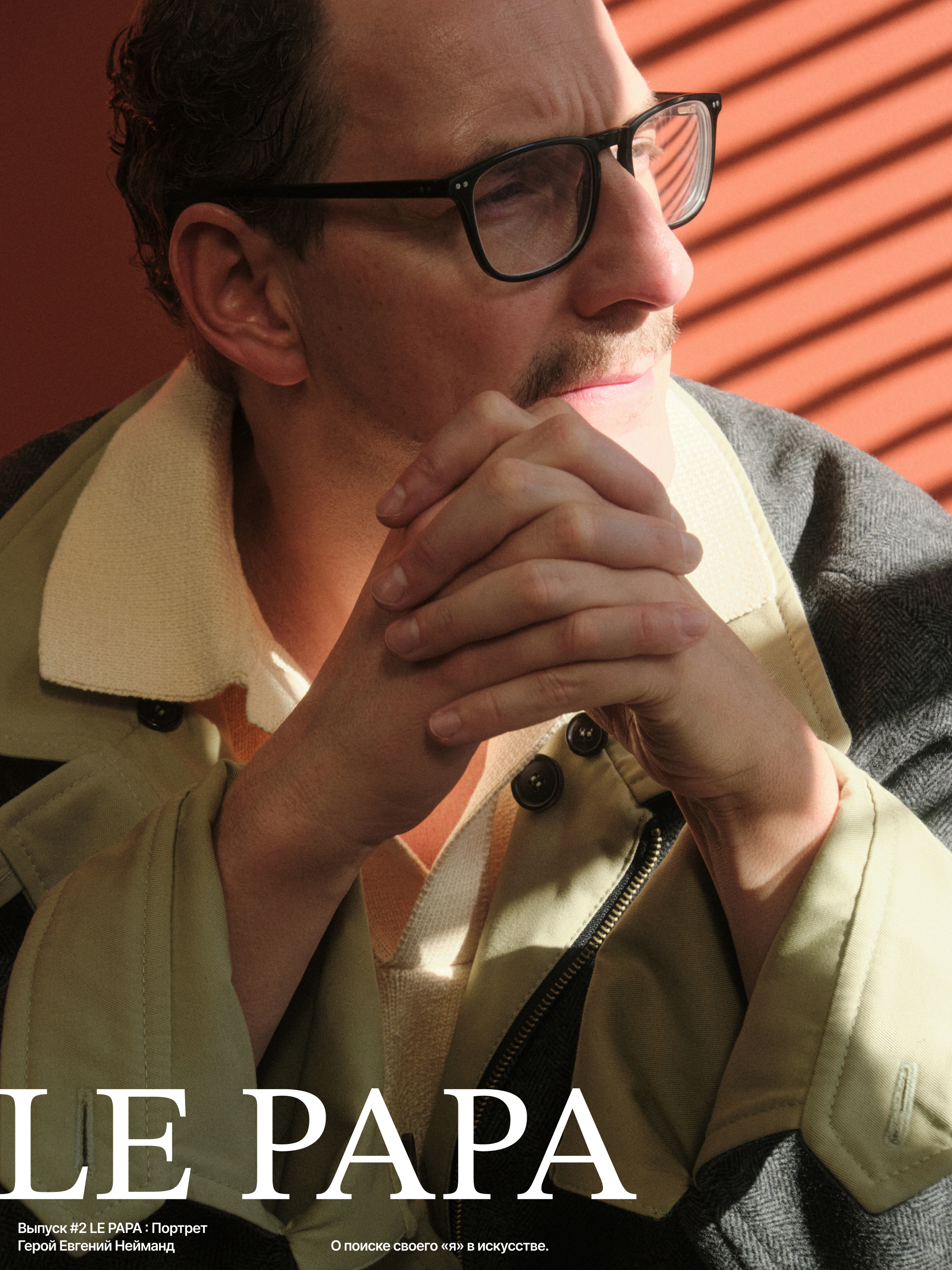 Архитектор Евгений Нейманд, основатель NEYMAND STUDIO в Санкт-Петербурге, стал новым героем проекта LE PAPA: PORTRAITS. Съёмка прошла в HIDEOUT Residence — пространстве, где в будущем откроется его студия. Команда бренда выбрала Нейманда, чтобы показать творческий процесс изнутри — с его поисками, сомнениями и моментами концентрации, которые сопровождают создание любого авторского проекта. На снимках — живые эмоции архитектора накануне открытия: сосредоточенность, внутренние колебания и рабочая атмосфера с лёгким творческим хаосом. Образ дополняют двусторонний бомбер, вязаное молочное поло и серые шерстяные брюки.