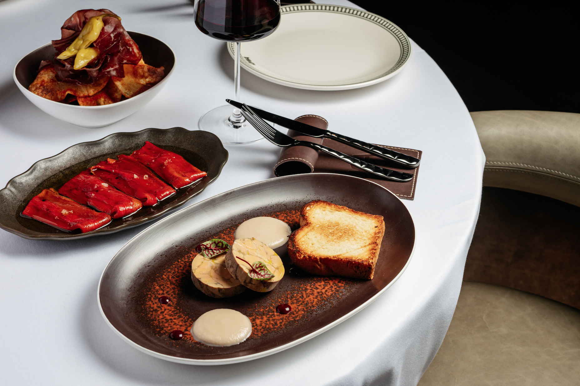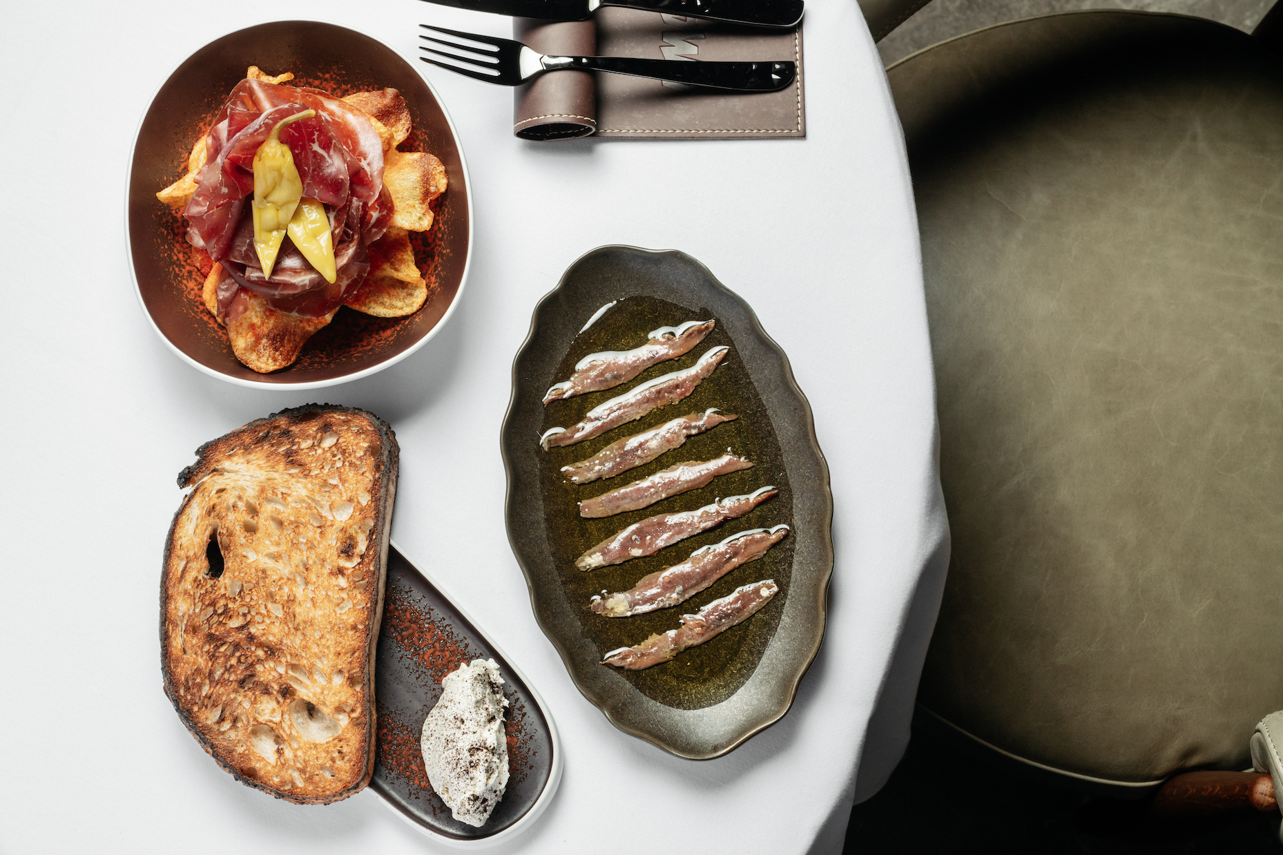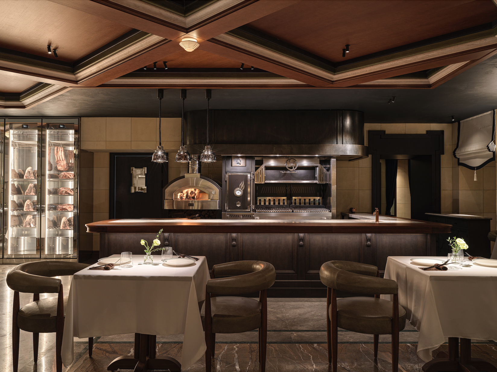 В центре кухни — огонь как главный инструмент. Открытая кухня, камеры сухого вызревания и работа с премиальными отрубами превращают приготовление в зрелищный ритуал. Здесь не маскируют вкус, а раскрывают его через текстуру, жар и минимализм. Меню строится вокруг огня: каталонские лепёшки кока из печи, эмпанадас, крокеты с креветками, осьминог по-галисийски, тартар с домашним хлебом. Главная роль — у мясной карты: от аргентинских отрубов и чурраско до вагю и выдержанных баскских чулетонов. Дополняют её деликатесы вроде хамона, сесины и тунца bluefin, а также авторские интерпретации — суп rabo de toro, хвосты в мальбеке или оссобуко с костным мозгом.