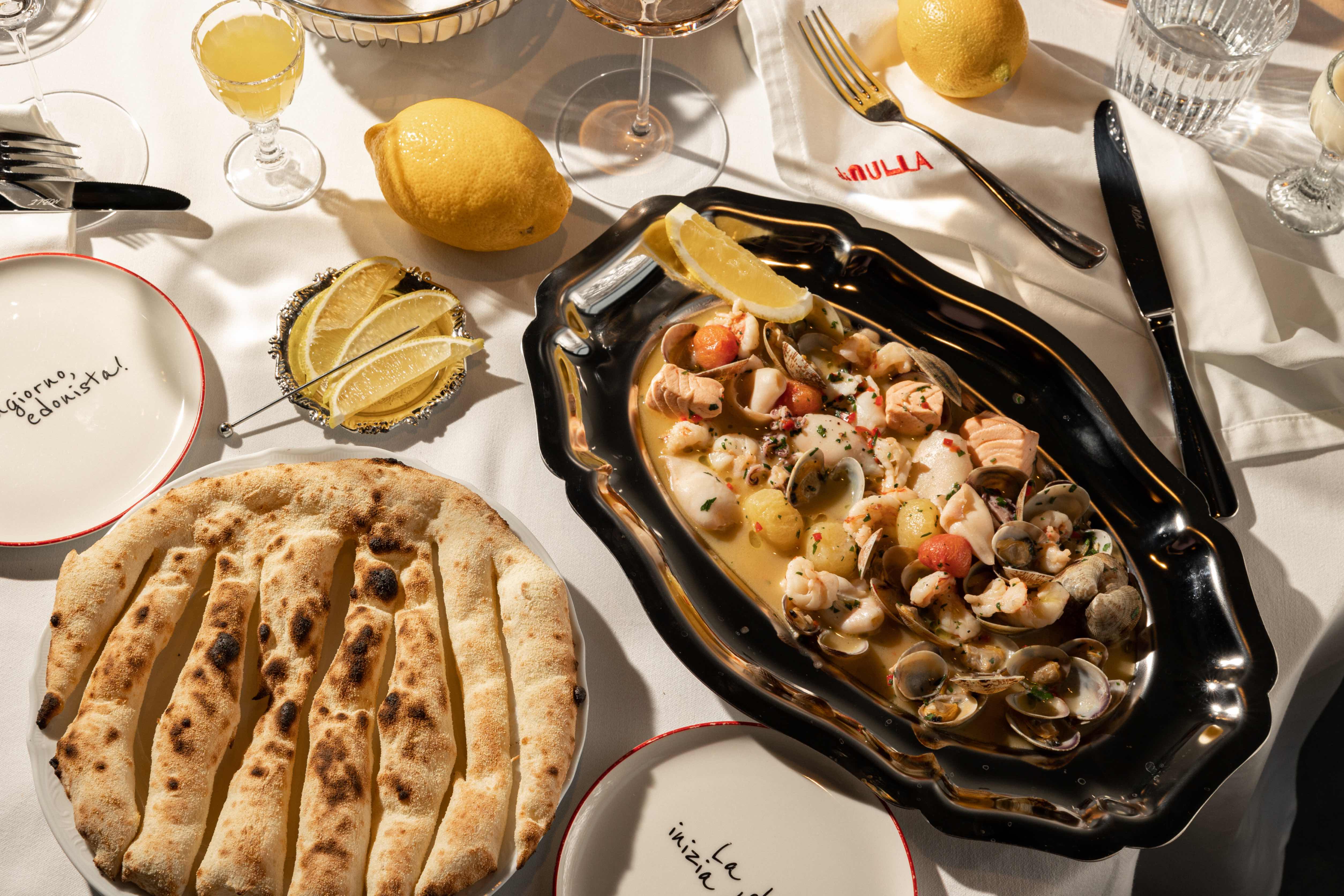 В Di Nulla представили специальное меню, которое будто переносит гостей в лето ещё до его официального наступления — с ароматом моря, цитрусов и тёплой южной кухни. Шеф-повар Андрей Смирнов собрал спешл как «меню-трансфер» на побережье Италии, где еда не торопится и становится частью образа жизни. В центре — яркие, свежие сочетания и ощущение средиземноморского отдыха. В меню: салат с сицилийским апельсином, фенхелем, зелёными оливками и руколой (1 200 ₽) с заправкой на оливковом масле и белом бальзамике; цветы цукини с лангустинами и зелёной сметаной на основе кинзы, чеснока и лимона (1 500 ₽); зелёные тальятелле с тартаром из лангустинов и страчателлой (1 800 ₽); морепродукты в соусе из белого вина и рыбного бульона с чили и лимоном (3 100 ₽); пицца с анчоусом и страчателлой на неаполитанском тесте (2 100 ₽); а также крошка мильфей с вишней (1 500 ₽). Барную часть дополнил шеф-бармен Арсен Эмирян — он создал шисо эспрессо-тоник (650 ₽) с пикантной свежестью и сливочным послевкусием масла нуазетт.